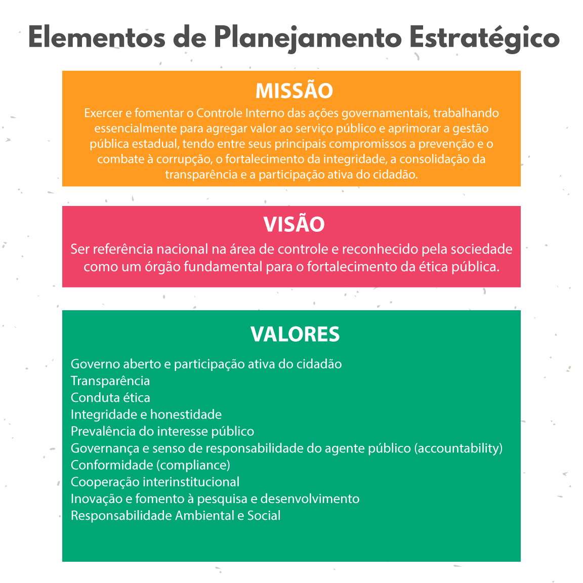 Exercer e fomentar o Controle Interno das ações governamentais, trabalhando essencialmente para agregar valor ao serviço público e aprimorar a gestão pública estadual, tendo entre seus principais compromissos a prevenção e o combate à corrupção, o fortalecimento da integridade, a consolidação da transparência e a participação ativa do cidadão.